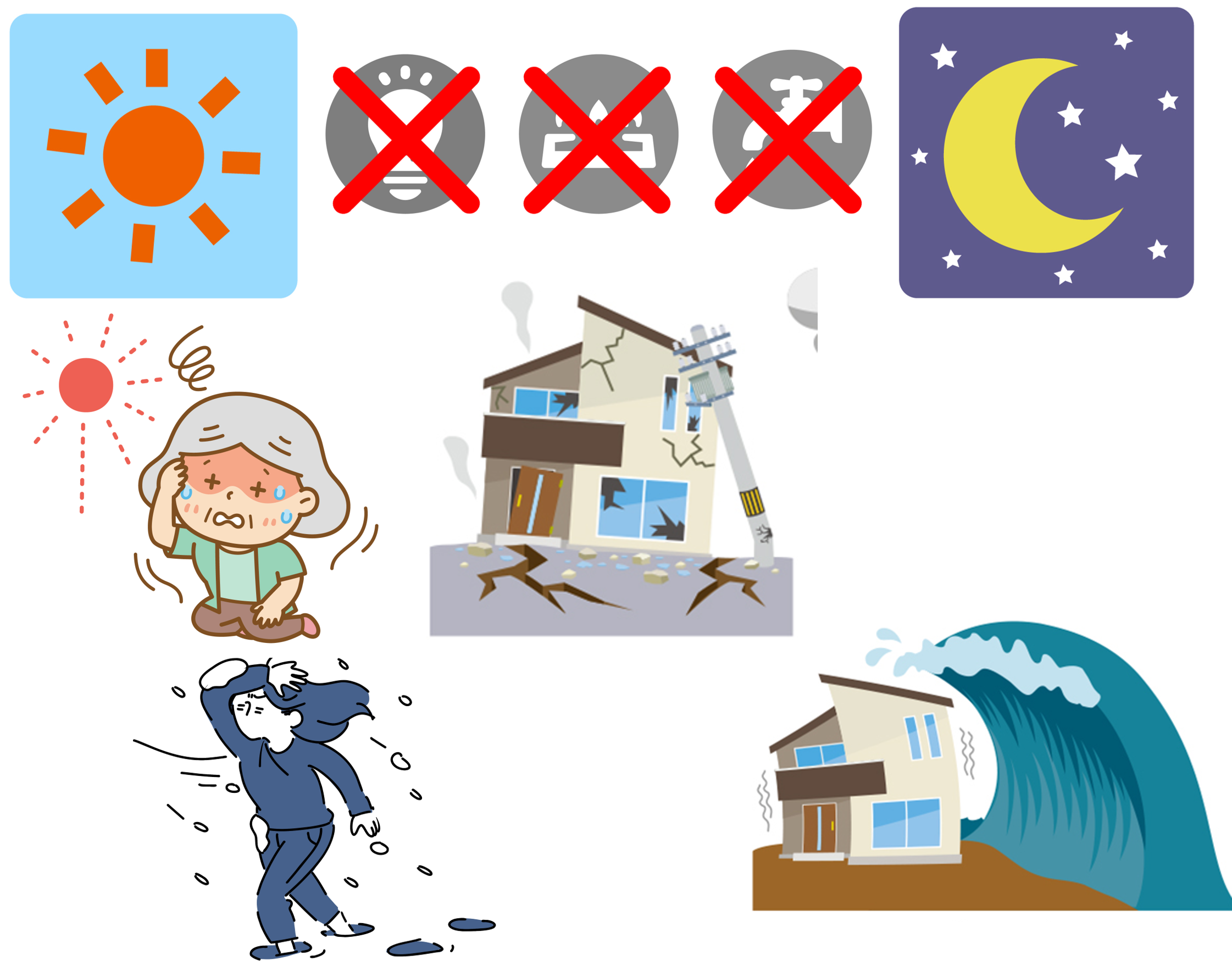 大災害は「昼間」「深夜」/「酷暑の日」「氷点下の吹雪の日」